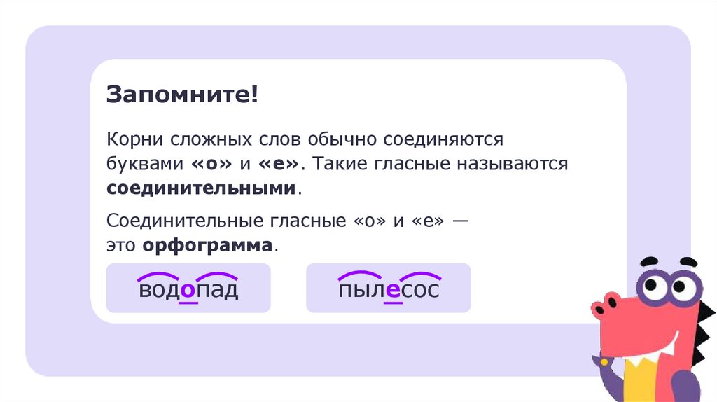 Запомните!Корни сложных слов обычно соединяются