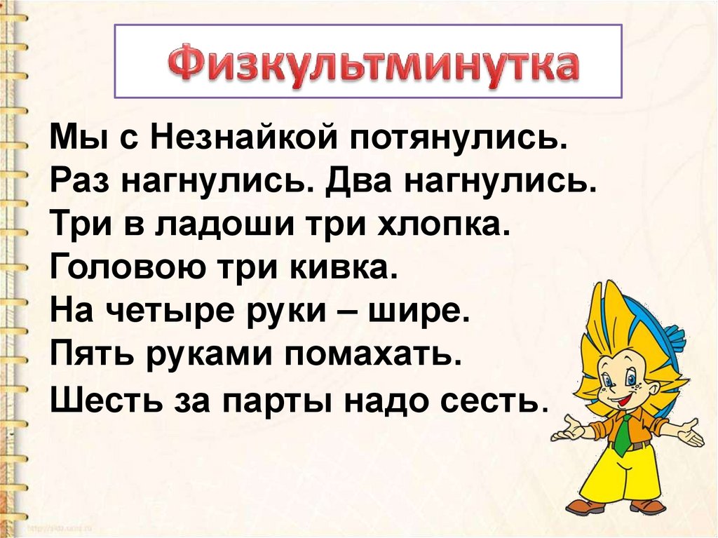 Мы с Незнайкой потянулись.Раз нагнулись. Два нагнулись.