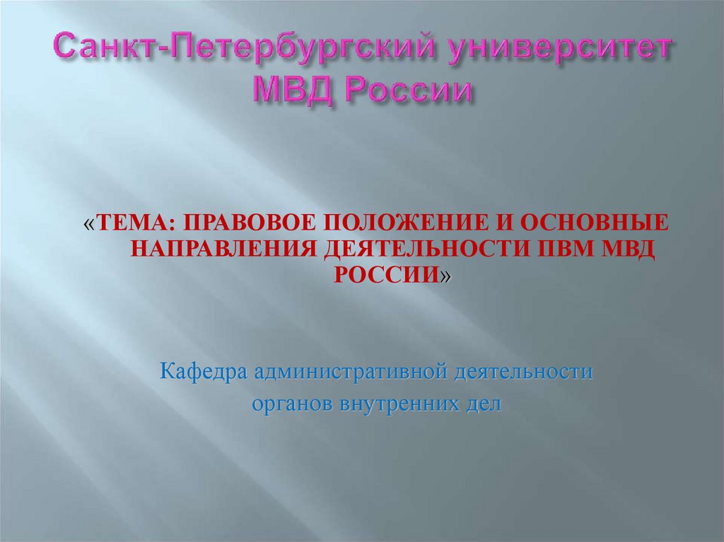 «ТЕМА: ПРАВОВОЕ ПОЛОЖЕНИЕ И ОСНОВНЫЕНАПРАВЛЕНИЯ ДЕЯТЕЛЬНОСТИ ПВМ МВД