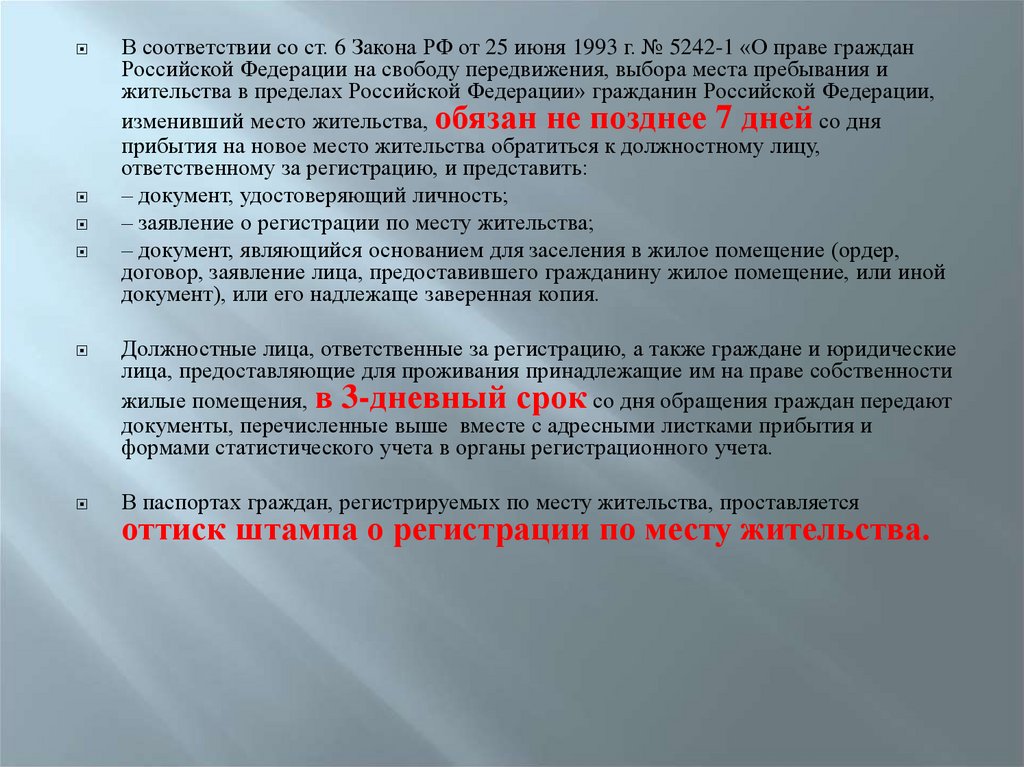 лицами правил регистрации и снятия с регистрационного учета граждан