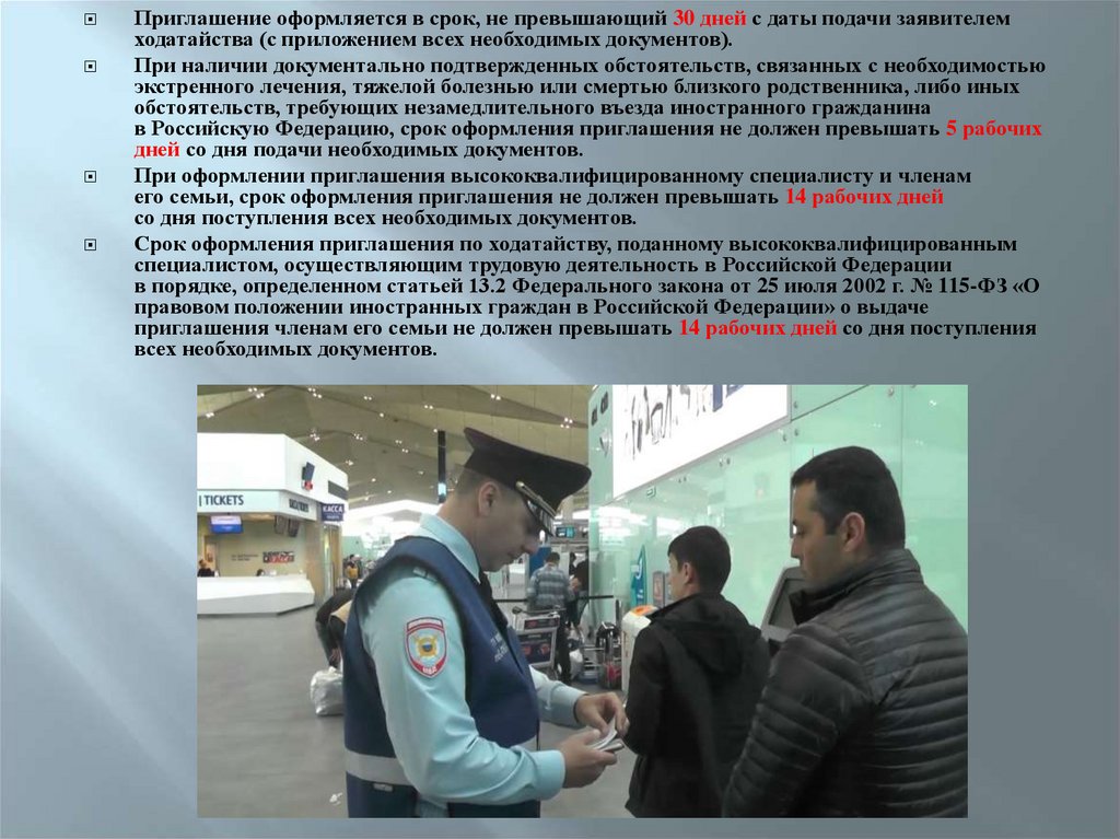 их пребывания на территории Российской Федерации и сдаются должностным лицам