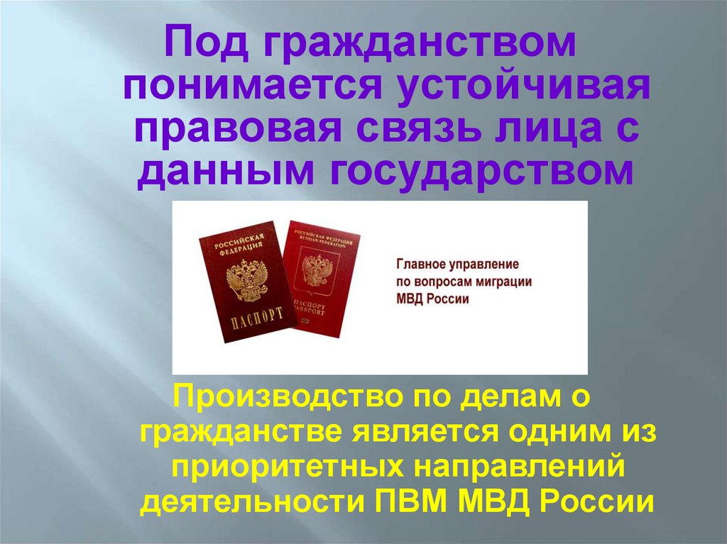Основные задачи ПВМ МВД России1) производство по делам о гражданстве Российской Федерации,