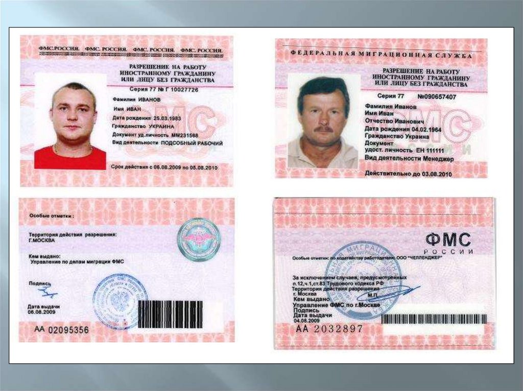 4) квитанцию об уплате государственной пошлины за выдачу данному иностранному гражданину
