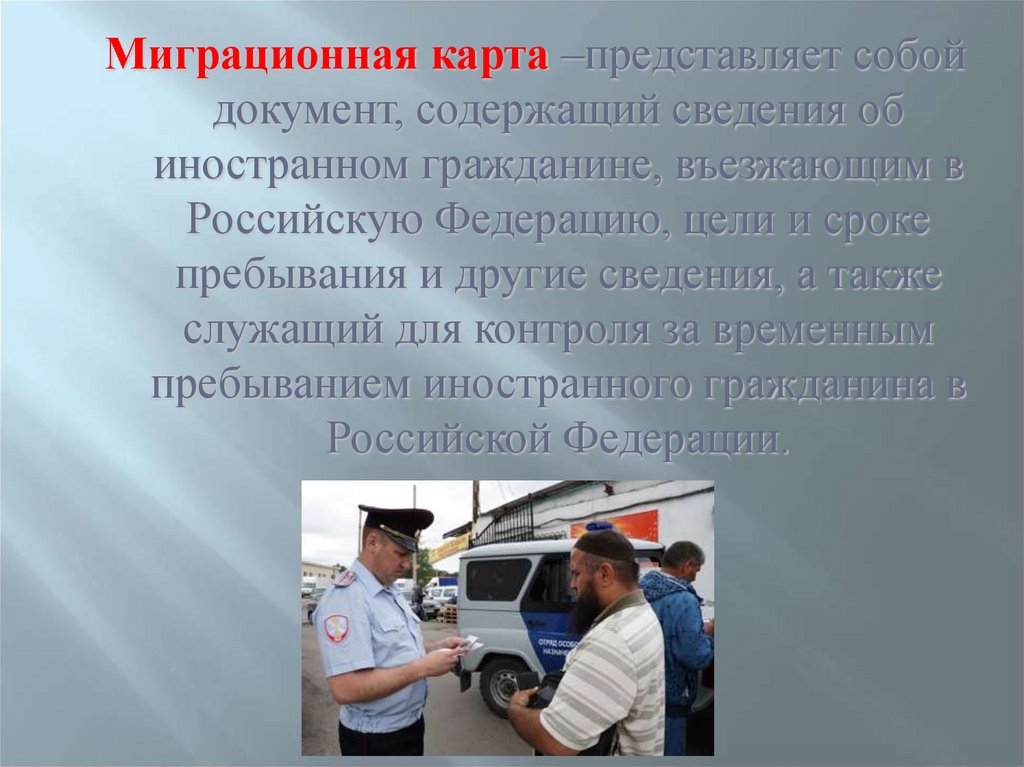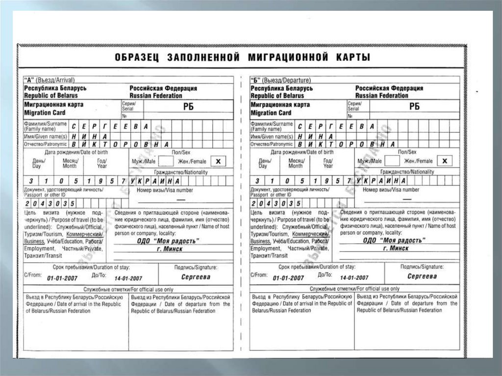 Миграционная карта –представляет собойдокумент, содержащий сведения об