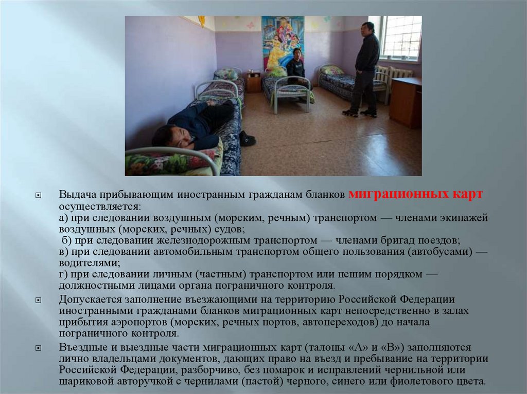 Выдача прибывающим иностранным гражданам бланков миграционных картосуществляется: