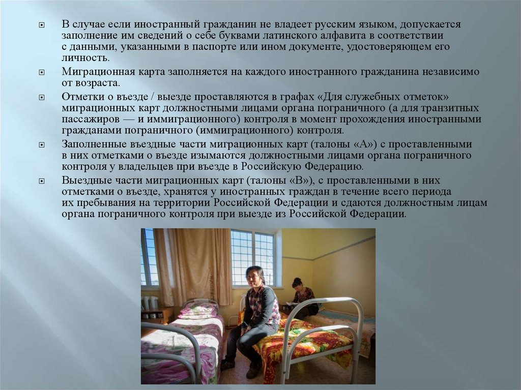 иностранными гражданами бланков миграционных карт непосредственно в залах