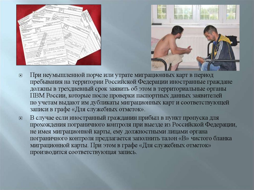 При неумышленной порче или утрате миграционных карт в периодпребывания на территории Российской Федерации иностранные граждане