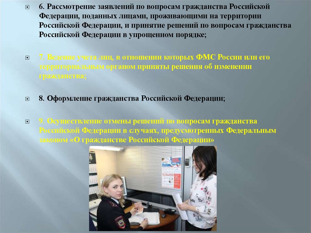 9. Полномочия ПВМ МВД России и ее территориальных органов в сфере гражданства