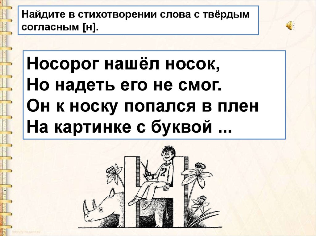Найдите в стихотворении слова с твёрдымсогласным [н].
