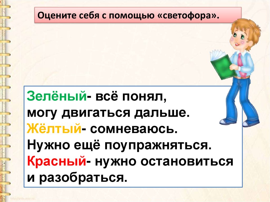 Оцените себя с помощью «светофора».Зелёный- всё понял,
