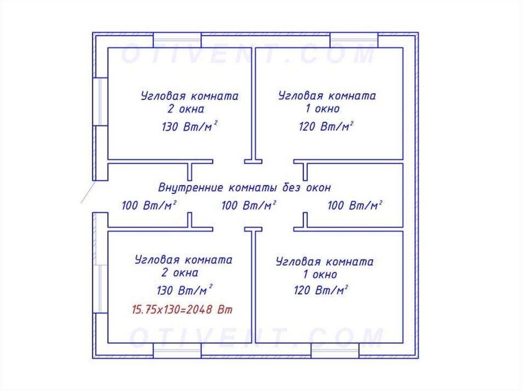 Расчет ведется для каждого помещения отдельно, затем результаты