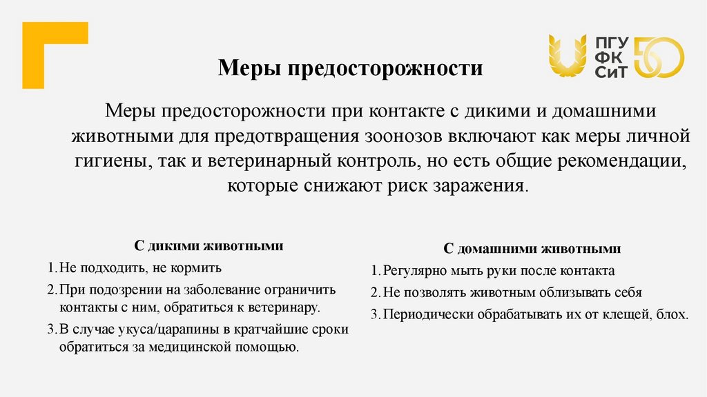Меры предосторожностиМеры предосторожности при контакте с дикими и домашними