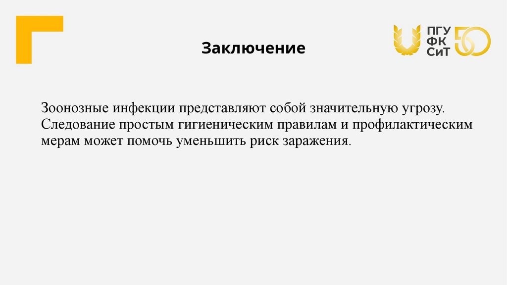 ЗаключениеЗоонозные инфекции представляют собой значительную угрозу.
