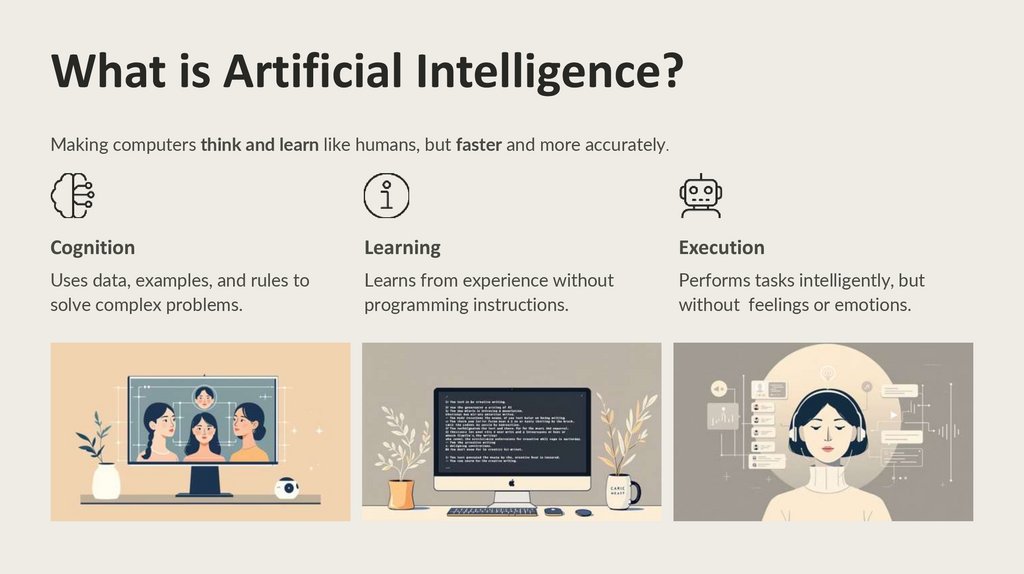 What is Artificial Intelligence?Making computers think and learn like humans, but faster and more accurately.