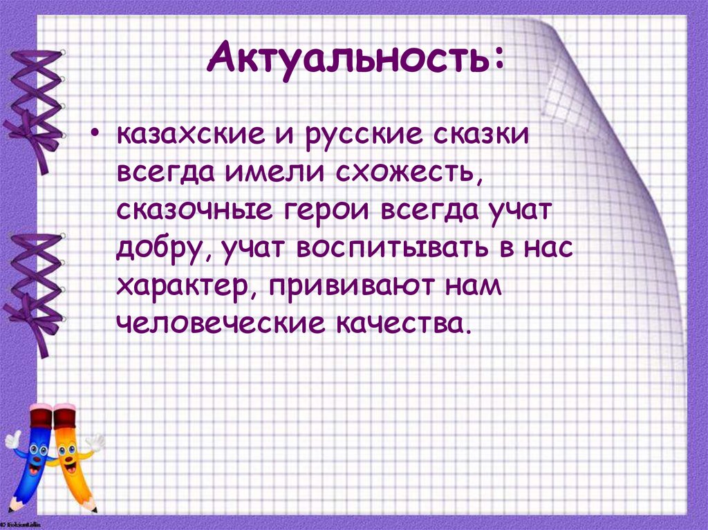 • я думаю, казахские и русскиеперсонажи сказок имеют много