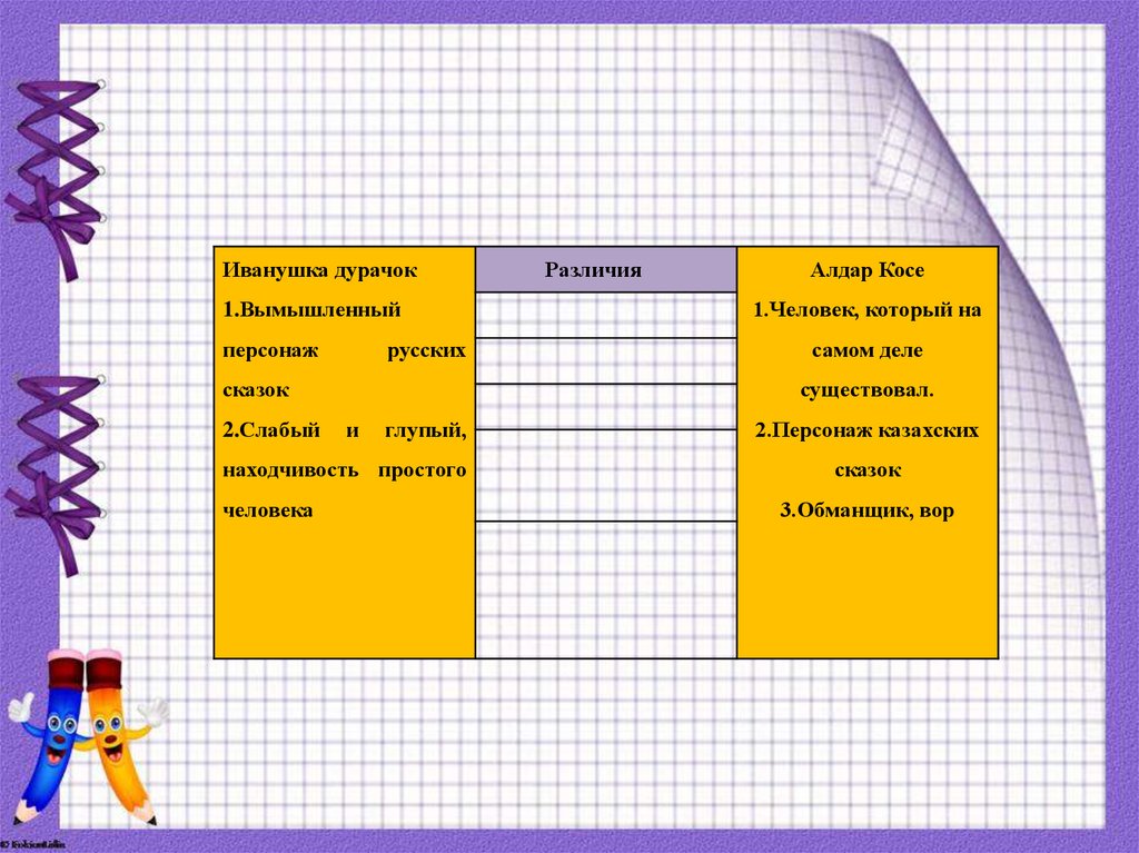 2. Исследовательская работа Тема: «Иванушка дурачок и Алдар Косе – лучшие герои сказок»