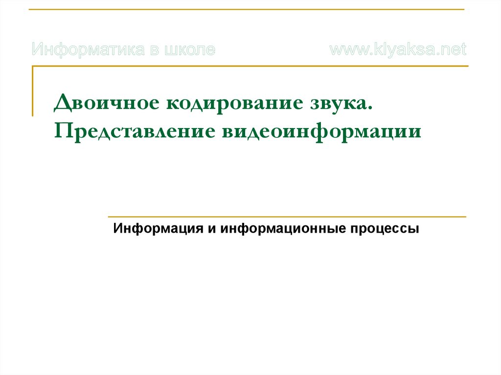Информация и информационные процессы2. Двоичное кодирование в компьютере