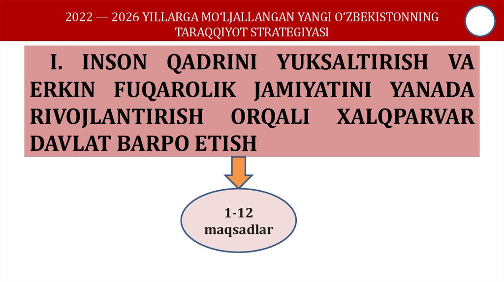 2022 — 2026 YILLARGA MO‘LJALLANGAN YANGI O‘ZBEKISTONNINGTARAQQIYOT STRATEGIYASI