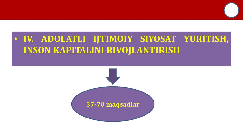 • IV. ADOLATLI IJTIMOIY SIYOSAT YURITISH,INSON KAPITALINI RIVOJLANTIRISH