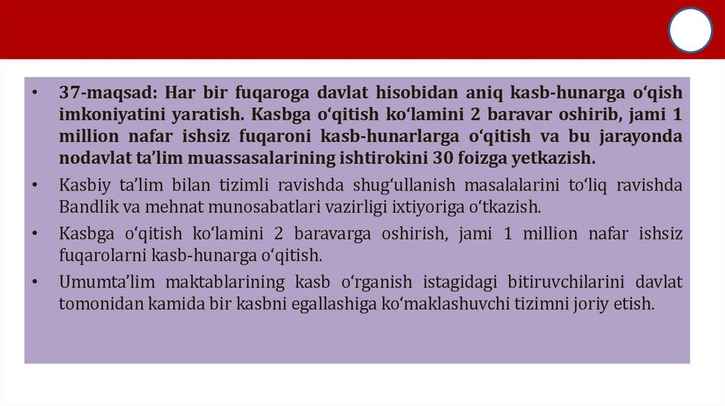 37-maqsad: Har bir fuqaroga davlat hisobidan aniq kasb-hunarga o‘qish