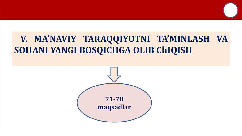 V. MA’NAVIY TARAQQIYOTNI TA’MINLASH VASOHANI YANGI BOSQICHGA OLIB ChIQISH