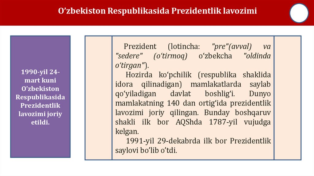 O’zbekiston Respublikasida Prezidentlik lavozimi1990-yil 24mart kuni