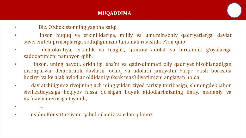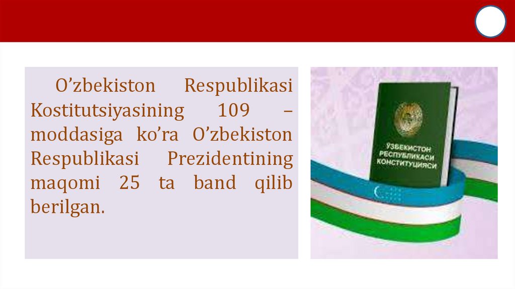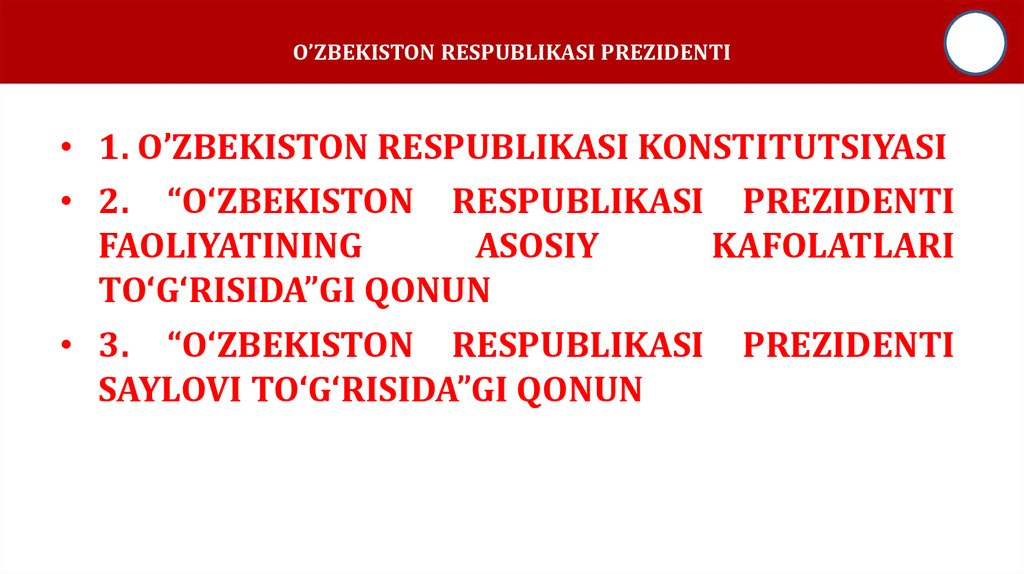 O’ZBEKISTON RESPUBLIKASI PREZIDENTI• 1. O’ZBEKISTON RESPUBLIKASI KONSTITUTSIYASI