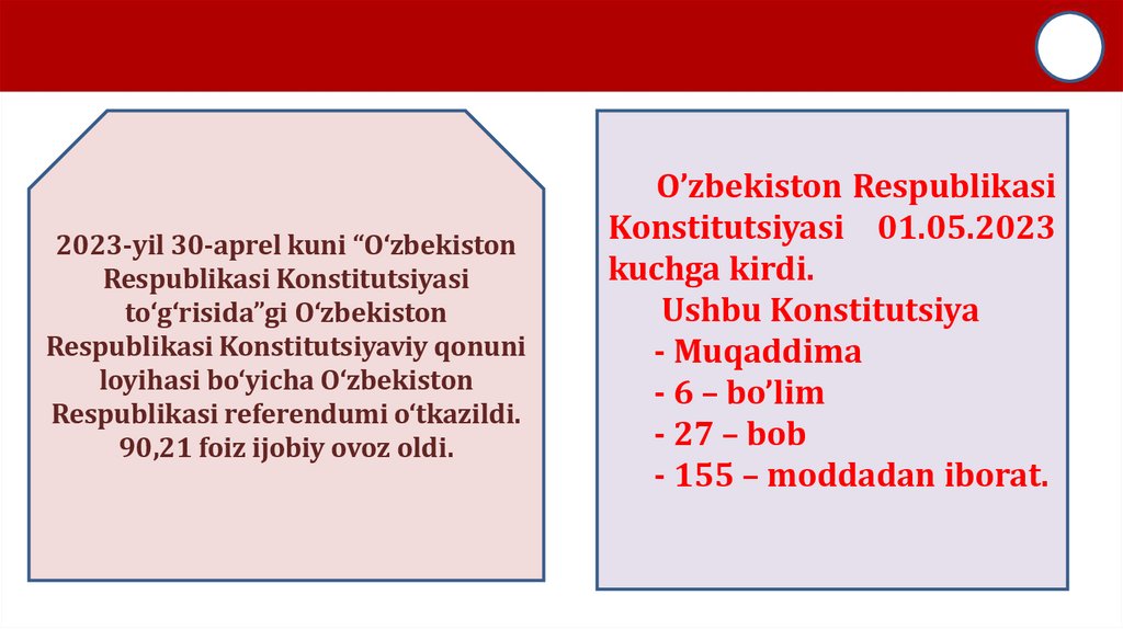 2023-yil 30-aprel kuni “O‘zbekistonRespublikasi Konstitutsiyasi