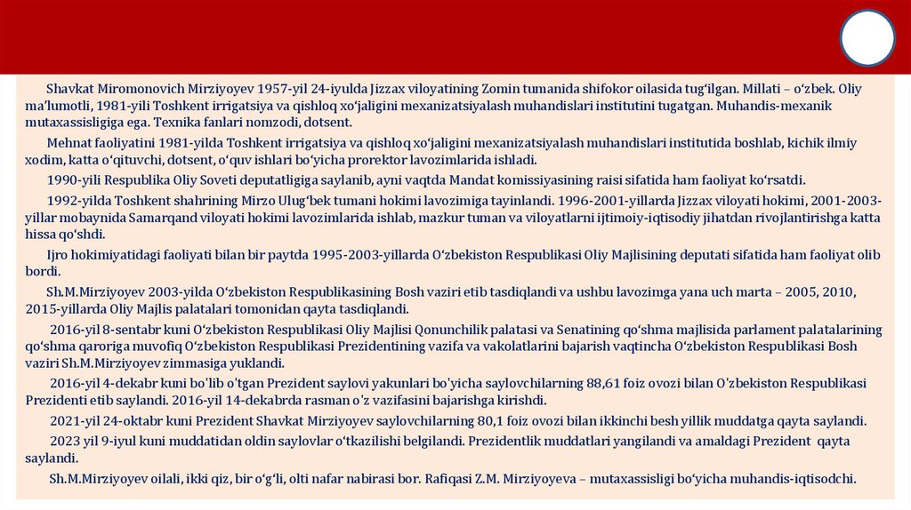 Sh.M. Mirziyoyev – O’zbekiston Respublikasi Prezidenti9.