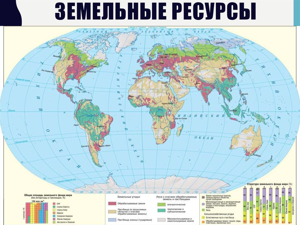 карте представлена структура земельного фонда и распределение его по разным регионам планеты.