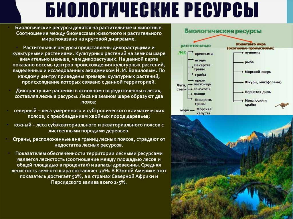 БИОЛОГИЧЕСКИЕ РЕСУРСЫБиологические ресурсы делятся на растительные и животные.