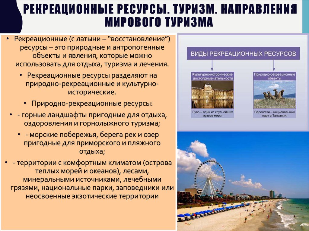 РЕКРЕАЦИОННЫЕ РЕСУРСЫ. ТУРИЗМ. НАПРАВЛЕНИЯМИРОВОГО ТУРИЗМА