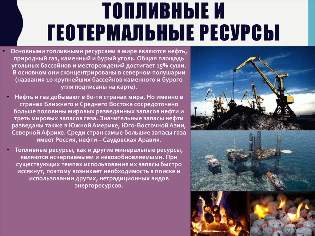 • Топливные ресурсы, как и другие минеральные ресурсы,