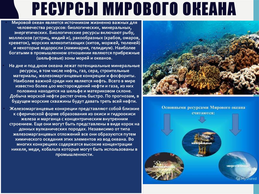РЕСУРСЫ МИРОВОГО ОКЕАНАМировой океан является источником жизненно важных для