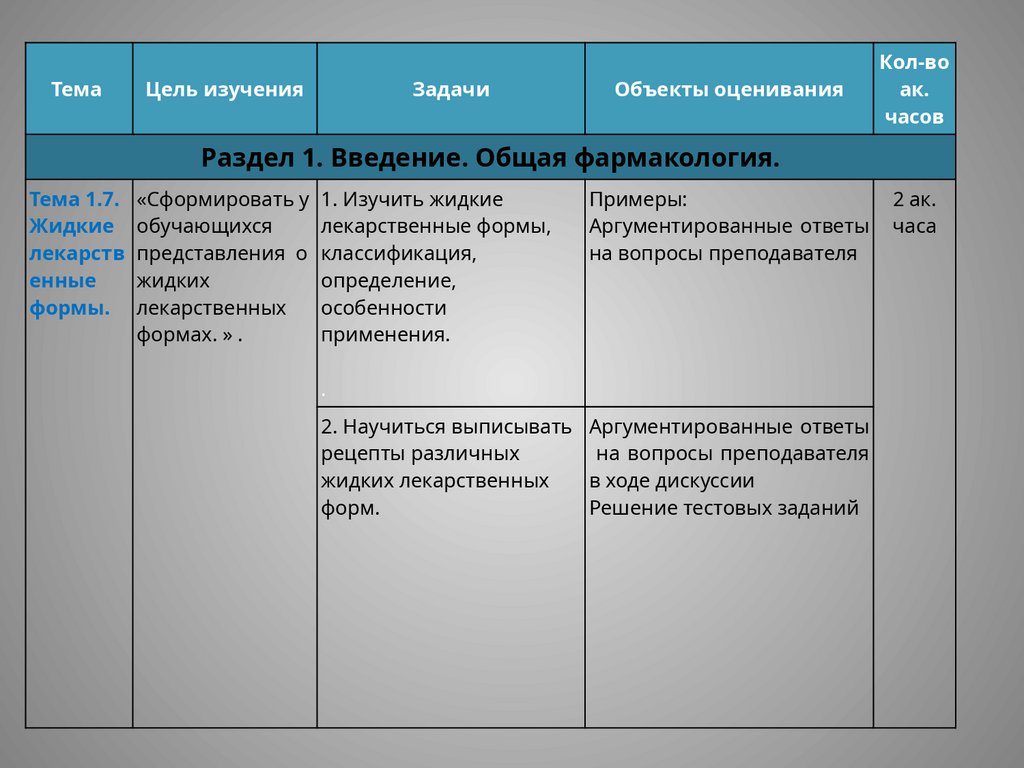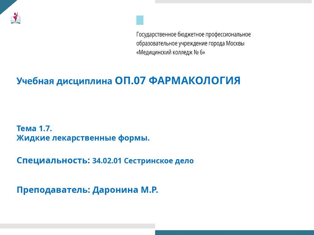 Учебная дисциплина ОП.07 ФАРМАКОЛОГИЯТема 1.7.