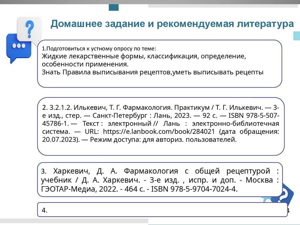 Домашнее задание и рекомендуемая литература1.Подготовиться к устному опросу по теме: