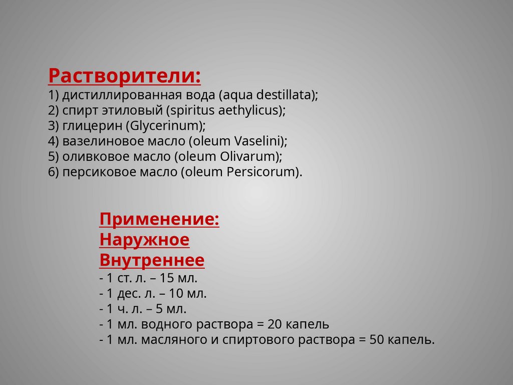 - 1 мл. масляного и спиртового раствора = 50 капель.