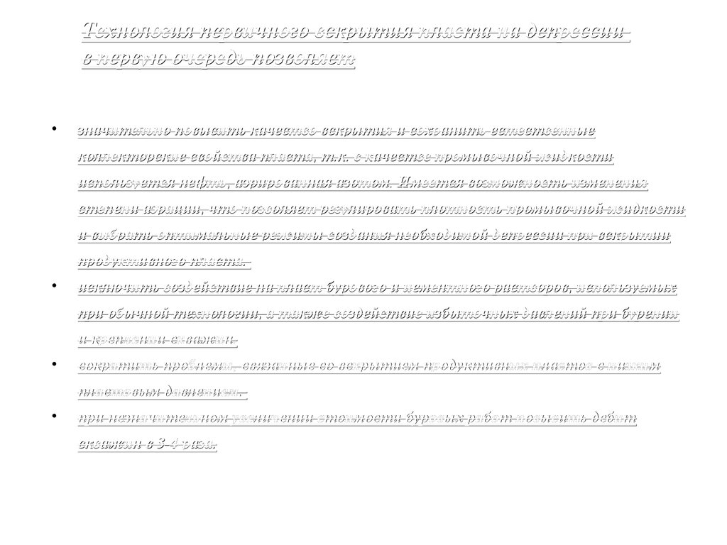 Технология первичного вскрытия пласта на депрессиив первую очередь позволяет