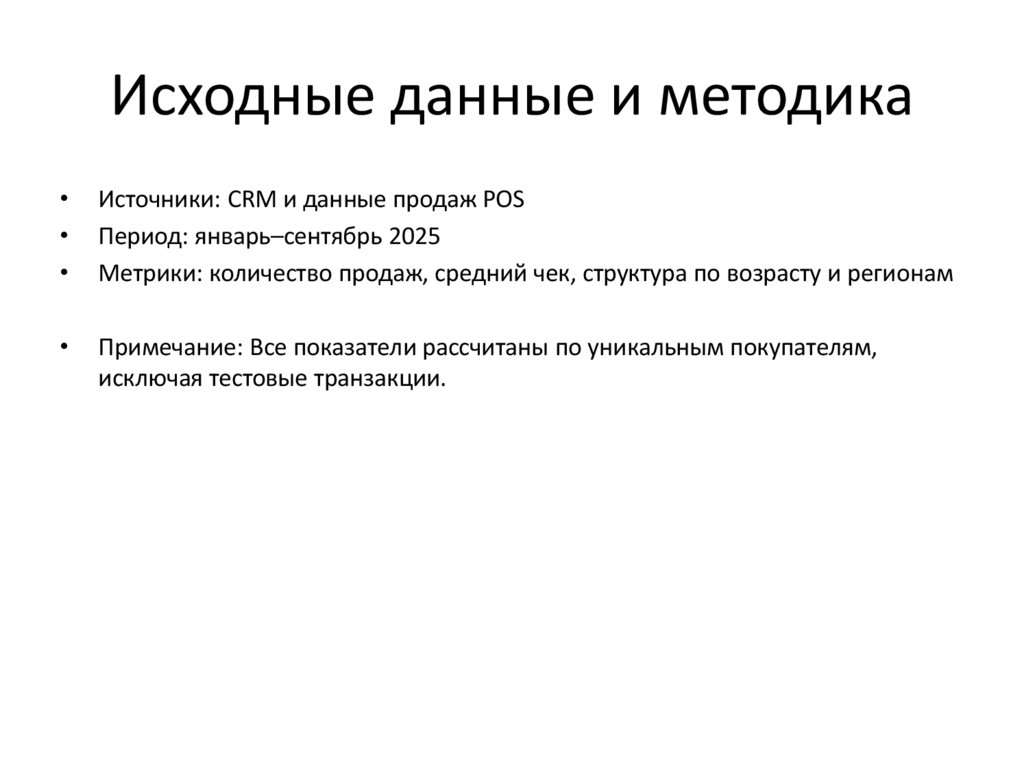 Исходные данные и методикаИсточники: CRM и данные продаж POS