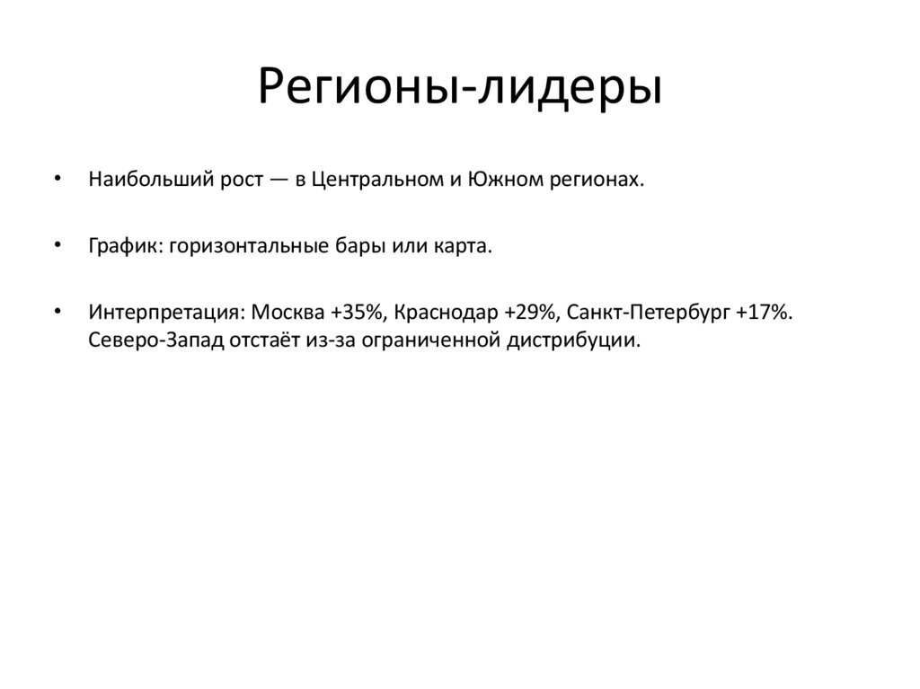 Интерпретация: Москва +35%, Краснодар +29%, Санкт-Петербург +17%.