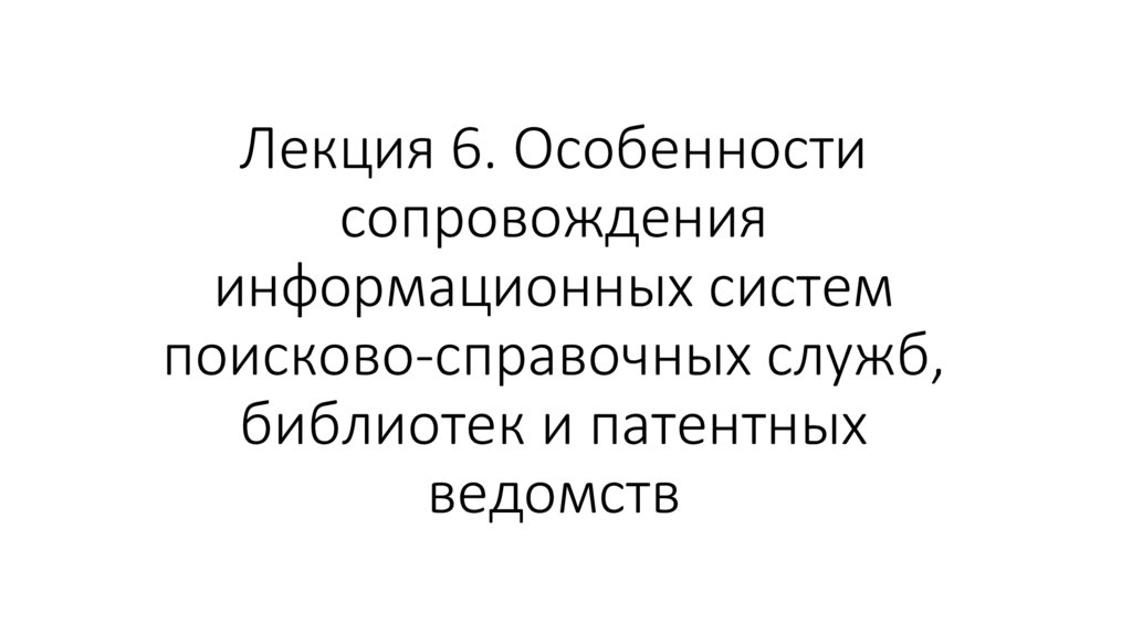 1. Лекция 6. Особенности сопровождения информационных систем поисково-справочных служб, библиотек и патентных ведомств