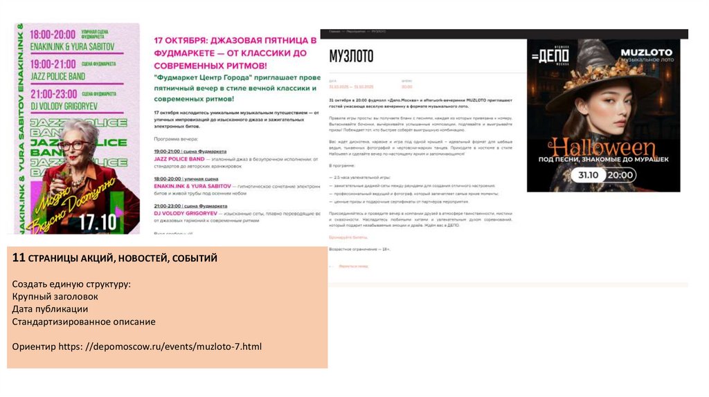 11 СТРАНИЦЫ АКЦИЙ, НОВОСТЕЙ, СОБЫТИЙСоздать единую структуру: