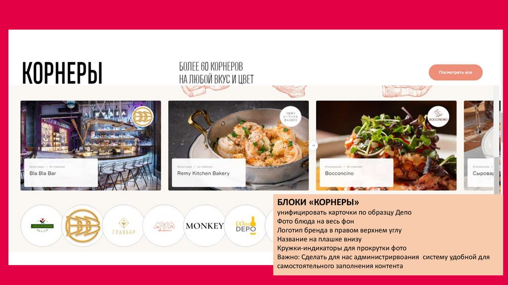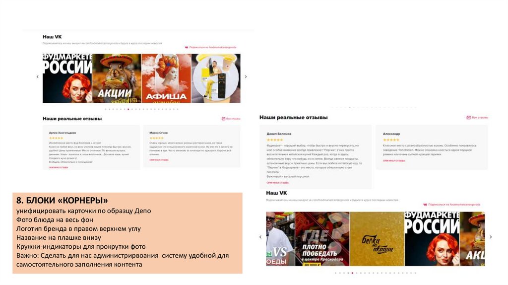8. БЛОКИ «КОРНЕРЫ»унифицировать карточки по образцу Депо
