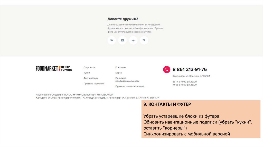 9. КОНТАКТЫ И ФУТЕРУбрать устаревшие блоки из футера