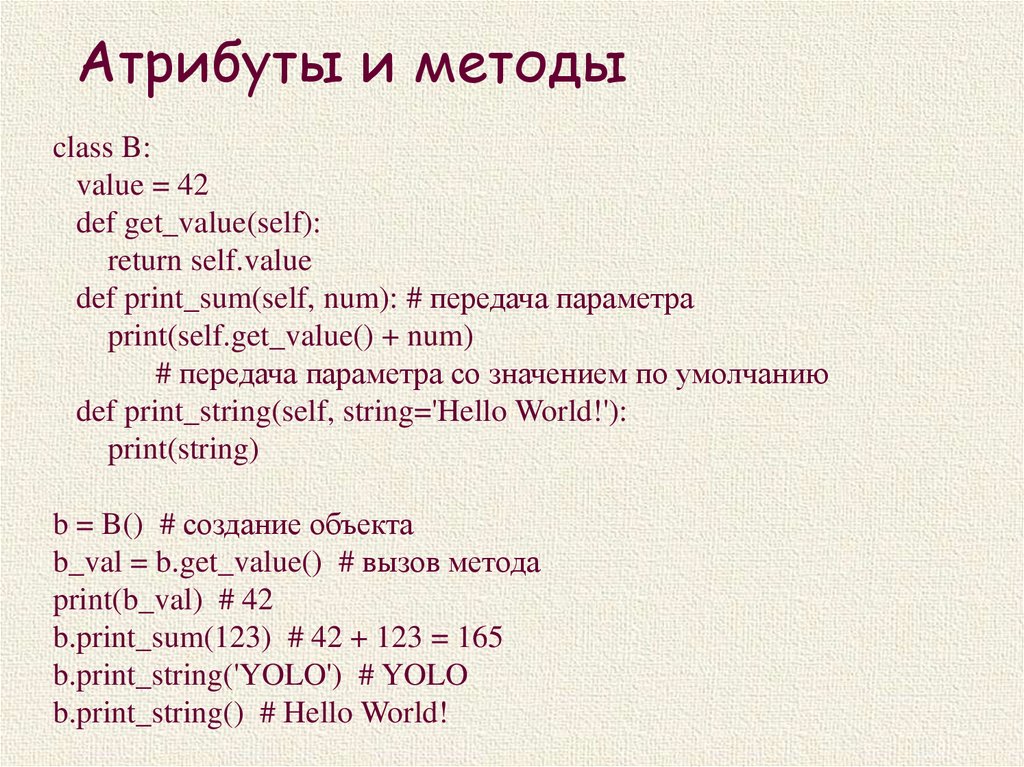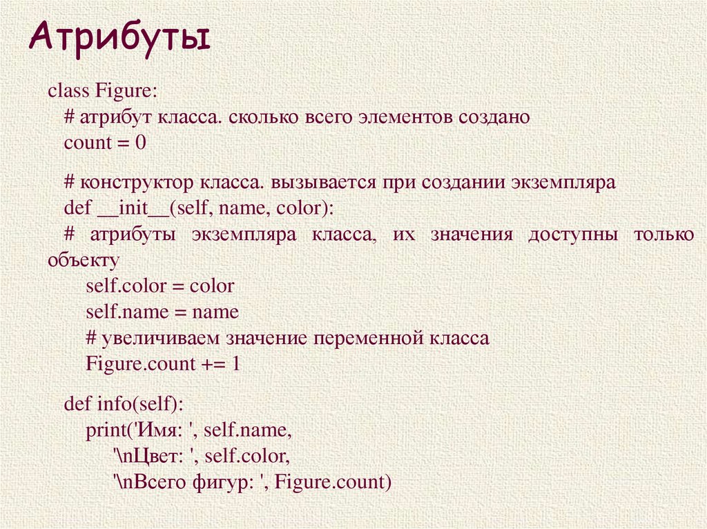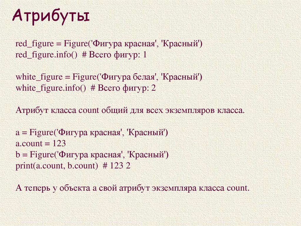 АтрибутыАтрибут экземпляра класса — атрибут, определенный внутри