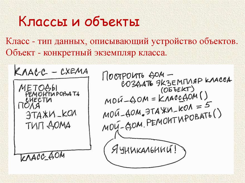 Классы и объектыКласс - тип данных, описывающий устройство объектов.