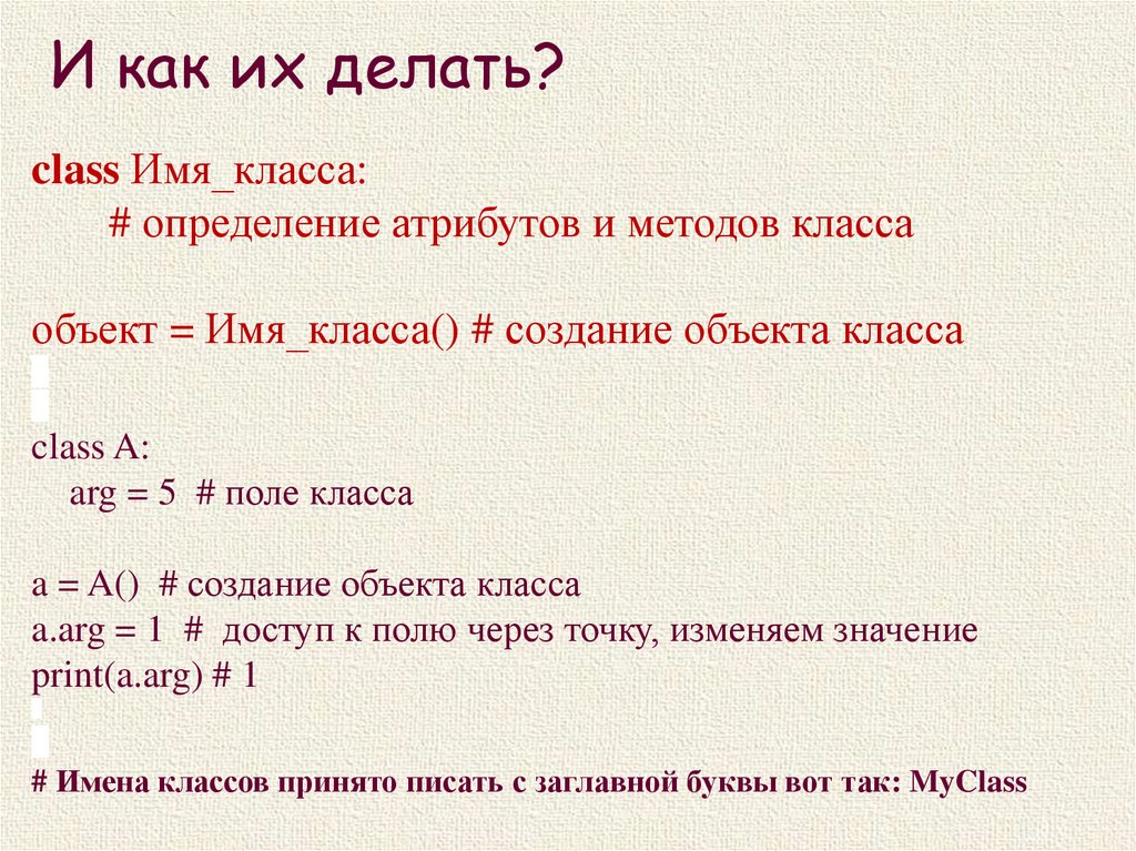 # Имена классов принято писать с заглавной буквы вот так: MyClass