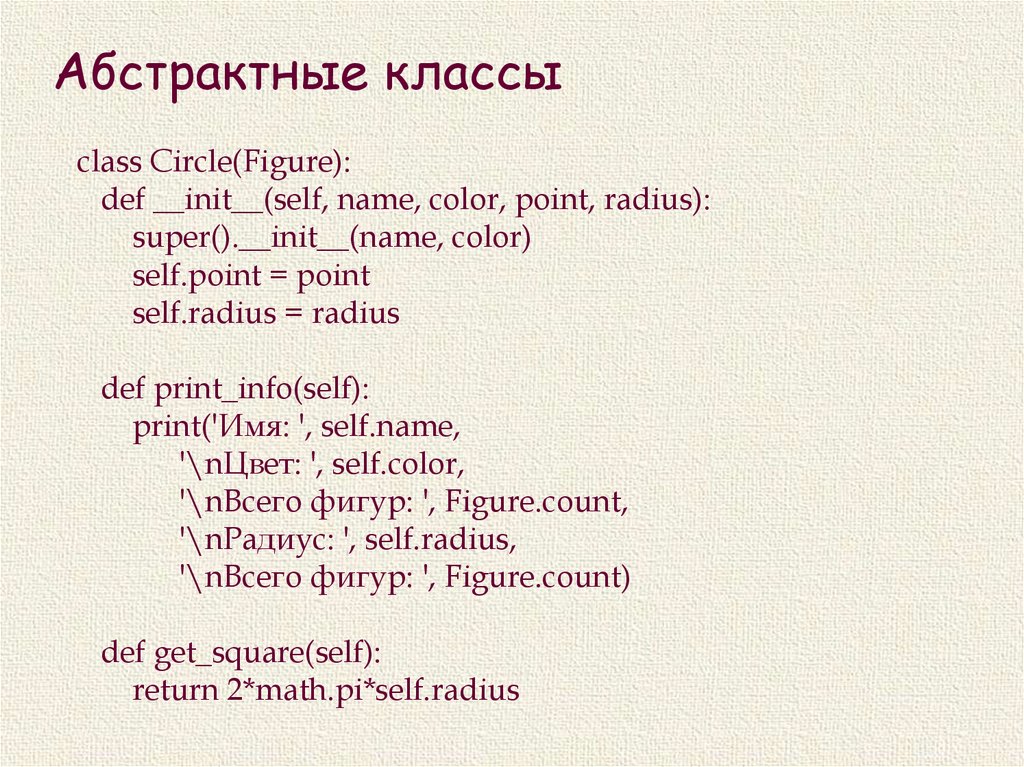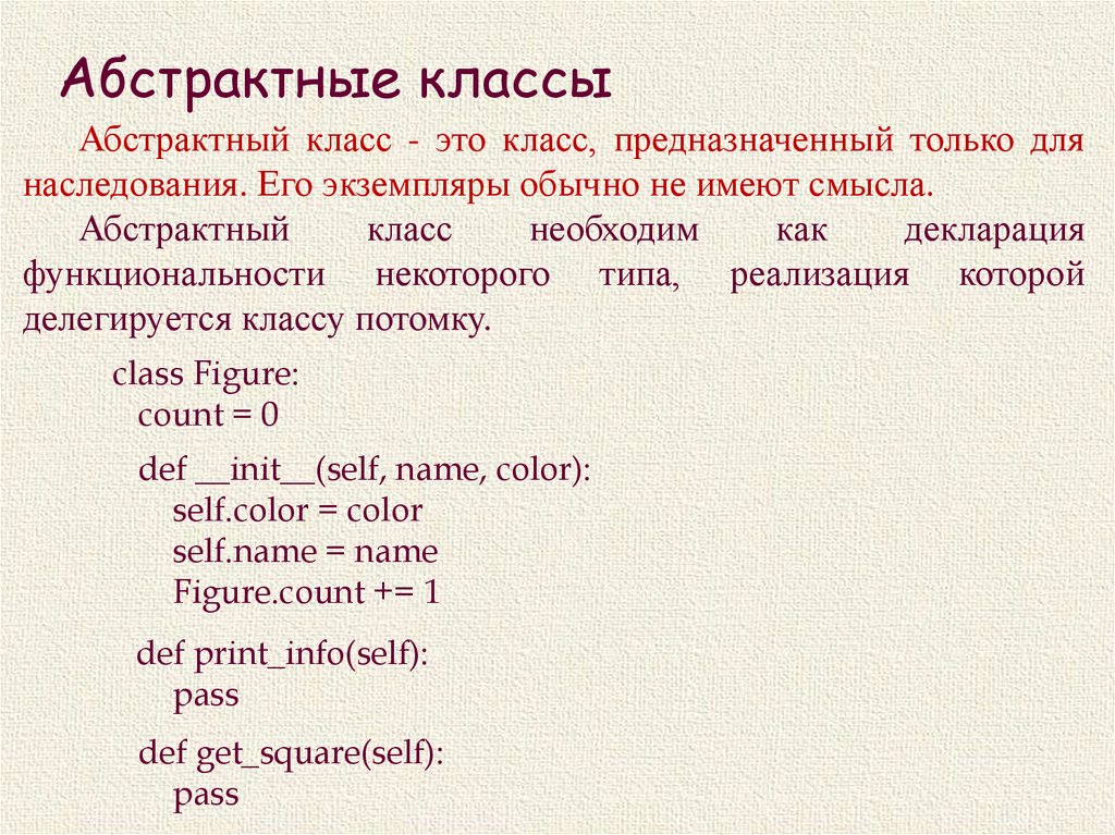 Абстрактные классыАбстрактный класс - это класс, предназначенный только для