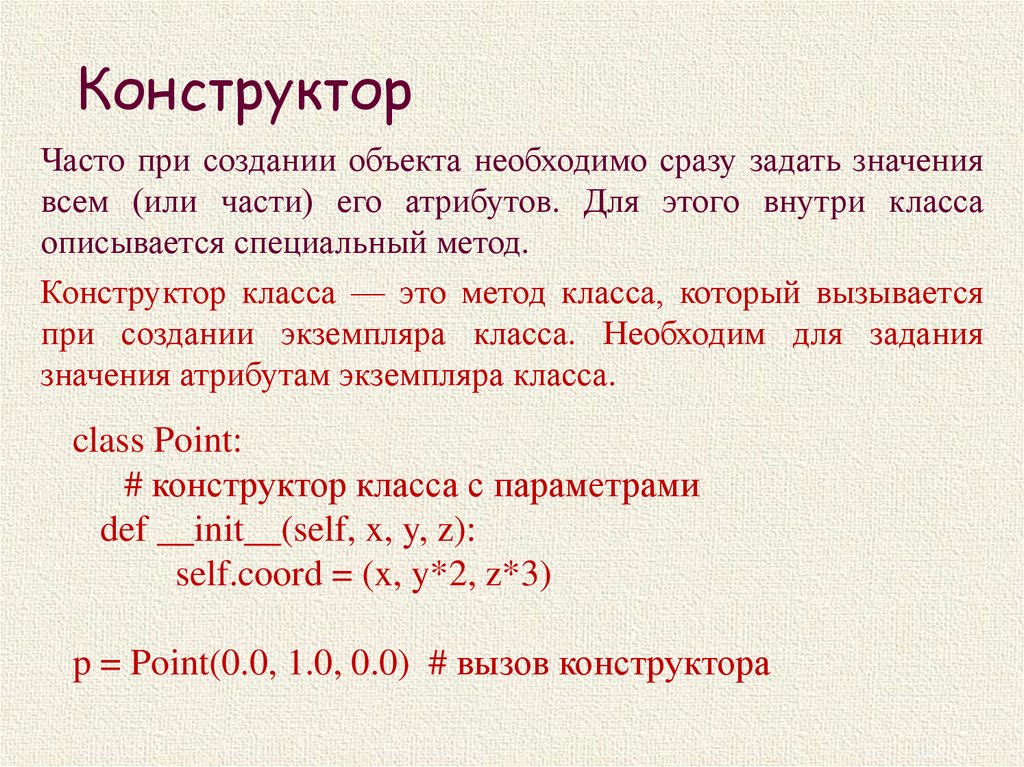 КонструкторЧасто при создании объекта необходимо сразу задать значения