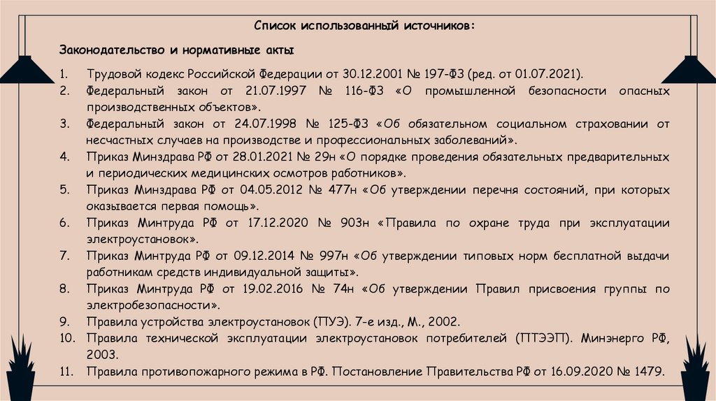 10. Правила технической эксплуатации электроустановок потребителей (ПТЭЭП). Минэнерго РФ,